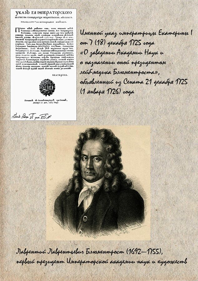 Этому предшествовал ряд важных событий. Так, 13 января 1724 г. Петром I в Правительствующий Сенат была направлена «Записка об учреждении Академии наук и художеств». В документе, указывалось, что Академия должна стать местом «в котором бы языкам учились, так же прочим наукам, знатным художествам и переводили книги».
